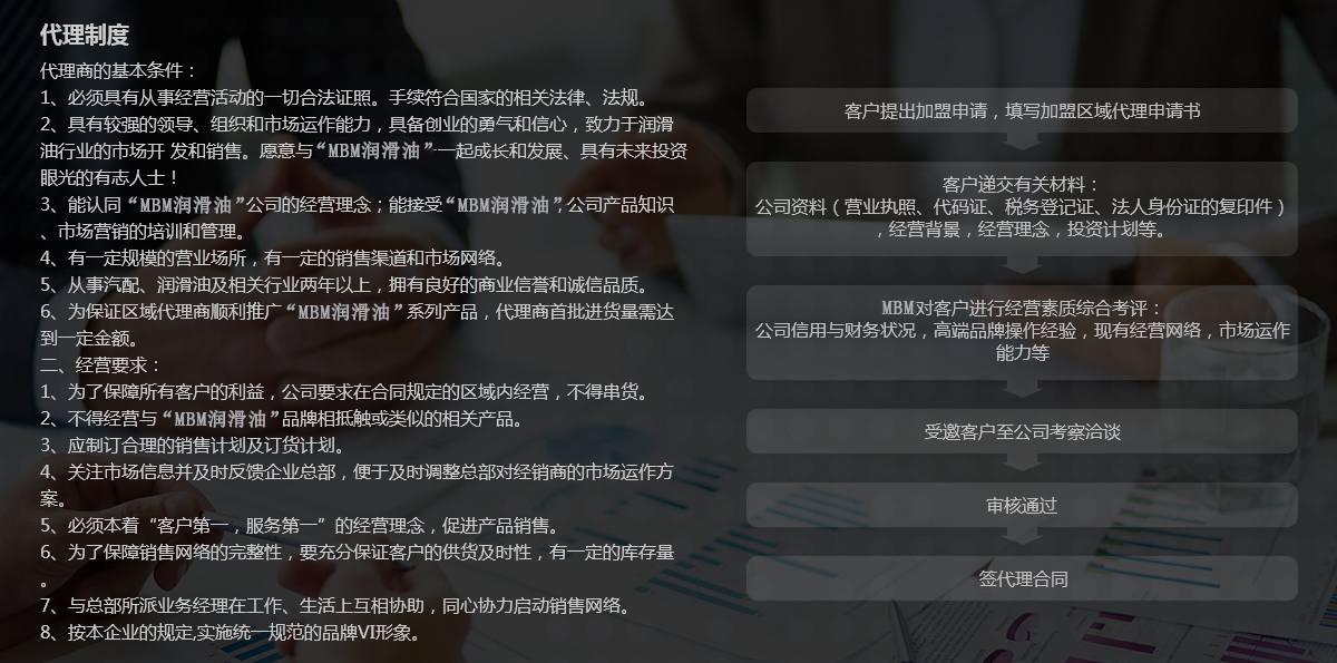5、業(yè)務支持:不定期派遣業(yè)務管理人員、營銷策劃人員、協(xié)助銷售人員幫助代理商開拓市場。